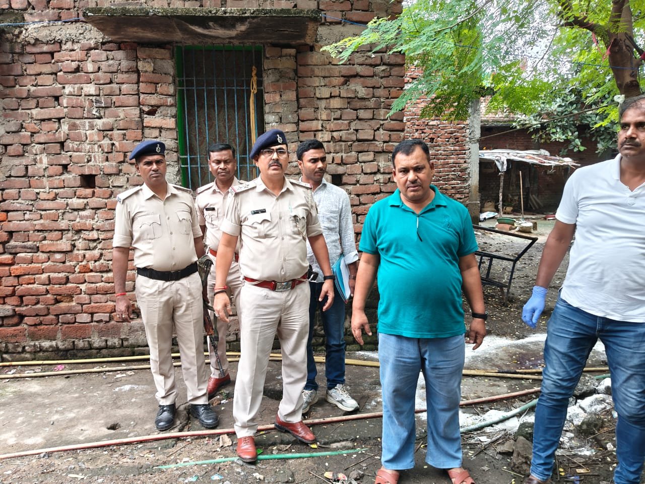घटनास्थल पर जांच के लिए पहुंची पुलिस टीम।