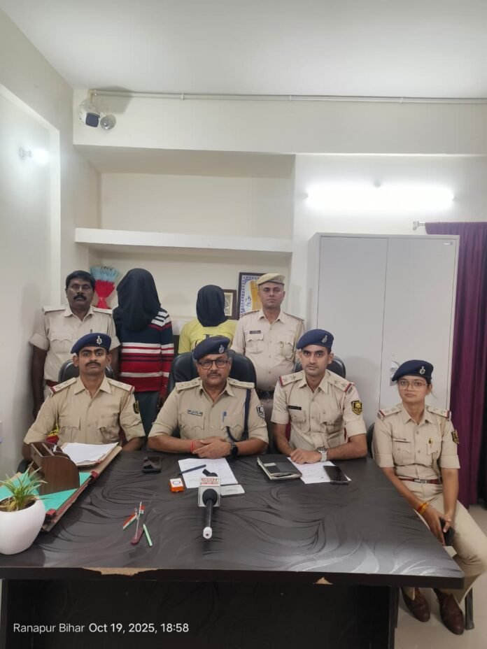 बेलागंज। चाकंद थाना अंतर्गत नौगढ़ मोड़ के पास वाहन चेकिंग अभियान चलाया जा रहा था इसी दौरान गया पुलिस को गुप्त सूचना मिली कि अवैध हथियार का तस्करी किया जा रहा है, वरीय पुलिस अधीक्षक गया जी के द्वारा निर्देशित करते हुए डीएसपी रवि प्रकाश सिंह के नेतृत्व में एक विशेष टीम का गठन किया गया। फिर वाहन जाँच अभियान चलाया गया अवैध हथियार भंडारण एवं तस्कर के खिलाफ विशेष अभियान चलाया गया।डीएसपी रवि प्रकाश सिंह ने प्रेस कॉन्फ्रेंस करते हुए बताया कि नौगढ़ मोड़ के पास वाहन चेकिंग किया जा रहा था उसी दौरान गया पुलिस को सूचना मिली के अवैध हथियार का तस्करी किया जा रहा है जिसमें एक मोटरसाइकिल पर सवार दो व्यक्ति नौगढ़ मोड़ के पास पहुंचते हैं पुलिस को देखकर भागने का प्रयास करने लगे जिसे सशस्त्र बलों के द्वारा पकड़ कर दो चक्का वाहन को तलाशी ली गई तो सीट के नीचे से एक देसी कट्टा बरामद किया गया हिरासत में लिए गए दोनों व्यक्ति से जब पूछताछ की गई तो अपना नाम राजीव कुमार पिता देवशरण मिस्त्री ग्राम शेखपुरा एवं दूसरा व्यक्ति अपना नाम सोनू आलम उर्फ सोनू खान पिता मोहम्मद अब्बास खान ग्राम समसपुर दोनों थाना बेलागंज के रहने वाले हैं राजीव कुमार से जब कड़ाई से पूछताछ की गई तो उसने बताया कि मैं अपने घर पर ही अवैध हथियार बनाता हूं और जिस तरह का आर्डर मिलता है उसे तरह के आर्डर पर बनाकर हथियार बेचता हूं, जब पुलिस ने समसपुर स्थित आवास पर छापेमारी की तो वहां से अवैध हथियार बनाने वाली कई उपकरण बरामद किया,वही सोनू आलम उर्फ सोनू खान के ऊपर पहले से ही कई आपराधिक मुकदमा दर्ज है दोनों का अपराधीक इतिहास कंगाल जा रहा है इस कांड में संलिप्त अपराधियों के खिलाफ छापेमारी की जा रही है।