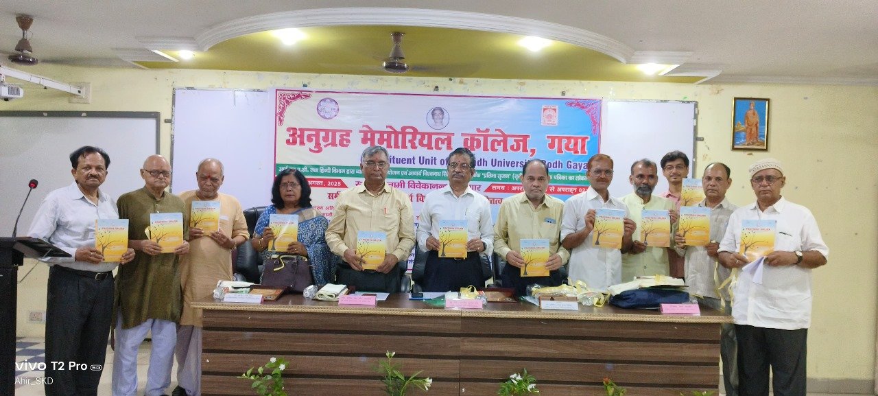 गयाजी।अनुग्रह मेमोरियल कॉलेज, गया के स्वामी विवेकानन्द सभागार में साहित्यिक सर्जन और श्रद्धा का अद्वितीय संगम दृष्टिगोचर हुआ, जब हिन्दी विभाग एवं आई.क्यू.ए.सी. के संयुक्त तत्वावधान में हिन्दी के मूर्धन्य समालोचक, निबंधकार, प्रशासक और आध्यात्मिक व्यक्तित्व आचार्य विश्वनाथ सिंह के बहुआयामी व्यक्तित्व एवं कृतित्व पर केन्द्रित विशिष्ट व्याख्यान-सह-पत्रिका लोकार्पण समारोह का आयोजन किया गया।