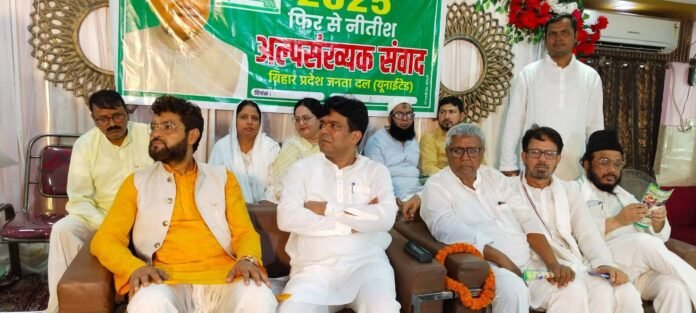 गया जी के निजी होटल में एक बार फिर नीतीश अल्पसंख्यक संवाद कार्यक्रम का किया गया आयोजन, मुख्य अतिथि तौर पर रहे MLC खालिद अनवर साहब एवं मौलाना उमर नूरानी इकबाल हुसैन, अल्पसंख्यक जिला अध्यक्ष सुल्तान अंसारी, प्रदेश सचिव मोहम्मद फिरोज अंसारी, पूर्व शिया बोर्ड के अध्यक्ष बबलू मासूमि एवं वारिस अली खान पार्टी के वरिष्ठ जदयू के नेता एवं पार्टी के कार्यकर्ता मौजूद रहे। वही mlc खालिद अनवर ने बताया इस बार भी जनता दल यूनाइटेड पार्टी बहुमत से सरकार बनाएगी। हम अल्पसंख्यक के लोग हर जगह जाकर लोगों को जागरूक कर रहे है वहीं उन्होंने मीडिया से बात करते हुए कहा मुस्लिम समझदार है सभी लोग जानते है हमारे नेता नीतीश कुमार ने बिहार को कितना कुछ दिया है। बिहार में जो कुछ नहीं हुआ वो हमारी जदयू पार्टी कर दिखाया।