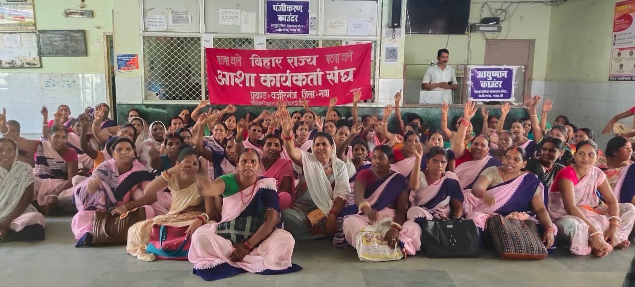 वजीरगंज। बिहार राज्य आशा एवं आशा फसिलिटेटर संघ ने शनिवार को वजीरगंज सीएचसी की ओपीडी सेवा बाधित कर काउंटर के सामने धरना – प्रदर्शन करने लगे। वे प्रोत्साहन राशि के बदले मानदेय सहीत अन्य मांग कर रहे थे। संघ की उपाध्यक्ष सुनिता कुमारी, आशा फैसिलिटेटर उर्मिला कुमारी, आशा सिन्हा एवं अन्य ने कहा कि सरकार हमलोगों से दिन – रात करके 56 प्रकार का कार्य करवा रही है, लेकिन उसके हिसाब से हमें मजदूरी नहीं मिल रही। प्रोत्साहन राशि देने में शर्तों का भंडार लगा दिया गया है, जिसके कारण कार्यरत होने के बावजूद भी कुछ नहीं मिल रहा है। सरकार हमलोगों को प्रोत्साहन के जगह पर मानदेय दे तथा सरकारी कर्मचारी का दर्जा देते हुए भविष्य निधी एवं अन्य योजना जैसे इंश्योरेंस आदि की सुविधा भी दे। हम अपने टोलों में रहकर दिन रात स्वास्थ सेवा देते हैं। अगर हमारी मांगे सरकार नहीं मानती है तो इस बार हमलोग चुनाव के दरम्यान करारा जबाव देंगे। जबतक हमारी मांग सरकार नहीं मानती है तबतक हमलोग सीएचसी से लेकर सड़क और सदन तक अपना आंदोलन जारी रखेंगे। मौके पर रंजू कुमारी, सुषमा कुमारी, रीता, बबीता, तनुजा, सुधा, कंचन, अंजु कुमारी सहीत अन्य लोगों ने भी धरना को संबोधित किया एवं सरकार के विरोध में नारे लगाये।
