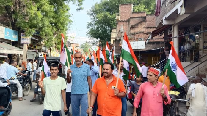 बेलागंज।भारतीय स्वतंत्रता दिवस को लेकर भारतीय जनता पार्टी की ओर से तिरंगा यात्रा निकाली गई जिसमें पार्टी के कार्यकर्ताओं सहित दर्जनों सामाजिक कार्यकर्ताओं ने भी भाग लिया । अग्रवाल उच्च्तर माध्यमिक विद्यालय से निकलकर बाजार होते हुए रामेश्वर हाई स्कूल मोड़ पर समाप्त हुआ। इस दौरान भारत माता की जय, वन्दे मातरम जैसे देशभक्ति नारों से पूरा रास्ता गुंजायमान रहा। नेताओं लोगों से अपने अपने घरों पर तिरंगा झंडा फहराने की अपील किया। इस दौरान भाजपा अध्यक्ष दिलीप कुमार राहुल कुमार सिंह सामाजिक कार्यकर्ता रविशंकर कुमार दीपक कुमार रवीश कुमार ज्योतिष सुमन दयानंद चंद्रवंशी अरविंद अग्रवाल धनंजय शर्मा सहित बड़ी संख्या में कार्यकर्ताओं ने भाग लिया।