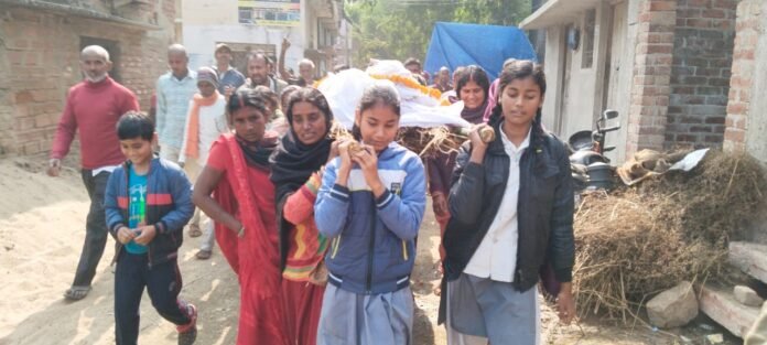 वजीरगंज। प्रखंड के ओरैल निवासी सह अर्जक नेता 74 वर्षीय सुरेश प्रसाद की शनिवार की सुबह मृत्यु हो जाने के उपरांत उनकी बहु निशा कुमारी , बेटी रेखा कुमारी, पोती पम्मी, पल्लवी, नातिन अंजलि प्रिया और गांव की ढेर सारी महिलाओं ने अरथी को कंधा देकर शमशान घाट पहुंचाया । शव को ले जाने के क्रम में वहां मौजूद लोगों ने जीना मरना सत्य है… प्रकृति का यही गति है… सुरेश प्रसाद अमर रहे… अर्जक संघ जिंदाबाद….के नारे लगा रहे थे। जुलूस का नेतृत्व अर्जक संघ सांस्कृतिक समिति के पूर्व राष्ट्रीय अध्यक्ष उपेन्द्र कुमार पथिक के अलावा मृतक के पुत्र रजनीकांत रवि, अविनाश कुमार, नागमणि प्रसाद, सीता राम प्रसाद, पूर्व मुखिया कैलाश महतो, पंचायत समिति सदस्य शशि भूषण कुमार,रामानंद प्रसाद , जितेंद्र अर्जक, बिंदेश्वर प्रसाद, सहदेव प्रसाद, सुजीत कुमार, यमुना प्रसाद, अमरेश कुमार, विनय कुमार,बच्चन शोषित आजाद,प्रिंस कुमार, आदि कर रहे थे। इस अवसर पर रविभूषण सिन्हा , अरविंद वर्मा, अमरेंद्र कुमार, अमित कुमार के अलावा सैकड़ों ग्रामीण शामिल थे।