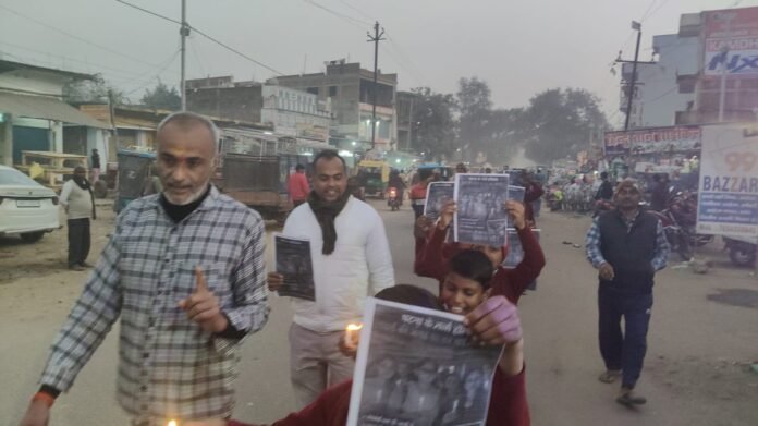 बेलागंज। बिहार के राजधानी पटना के गर्ल हॉस्टल में रहकर मेडिकल की तैयारी कर रही छात्रा गायत्री के साथ हुए अमानवीय घटना के बाद मौत को लेकर पूरे बिहार में आक्रोश देखा जा रहा है। इसी घटना को लेकर बेलागंज बजार में स्कूली बच्चों, बुद्धिजीवियों ने कैंडिल मार्च निकाला और घटना को लेकर आक्रोश जताते दोषियों को फांसी की सजा दिलाने की मांग की। समाजिक कार्यकर्ता कुनाल किशोर ने कहा बिहार के राजधानी में बेटी बहने सुरक्षित नहीं हैं तो स्थिति काफी चिंतनीय है। य़ह घटना घोर निंदनीय है। मृत छात्रा के हॉस्टल संचालक और हॉस्पिटल के डॉक्टरों ने जो अमानवीय व्यहवार किया है उसकी निष्पक्ष जांच करायी जाए और दोषियों को सीधे फांसी दी जाए। इस घटना से अभिभावकों में भय और असुरक्षा का माहौल बन गया है जो सरकार के लिए चुनौती है। य़ह घटना हृदयविदारक है। डॉक्टरों को भगवान का दर्जा दिया गया लेकिन जिस प्रकार व्यहवार चिकित्सकों का समाने आया है वह दानव से कम नहीं है। बिहार के बेटी के न्याय के लिए हम सब हर संघर्ष के लिए तैयार हैं । न्याय मिलने तक चुप नहीं बैठेगे । इस दौरान शिक्षक सुनील समाजसेवी अमरेंद्र प्रियदर्शी रविशंकर कुमार भाजपा नेता दीपक कुमार सुबोध शर्मा मुकुल कुमार कुनाल शर्मा किशोर यादव अमित अग्रवाल सहित बड़ी संख्या में लोग शामिल थे।