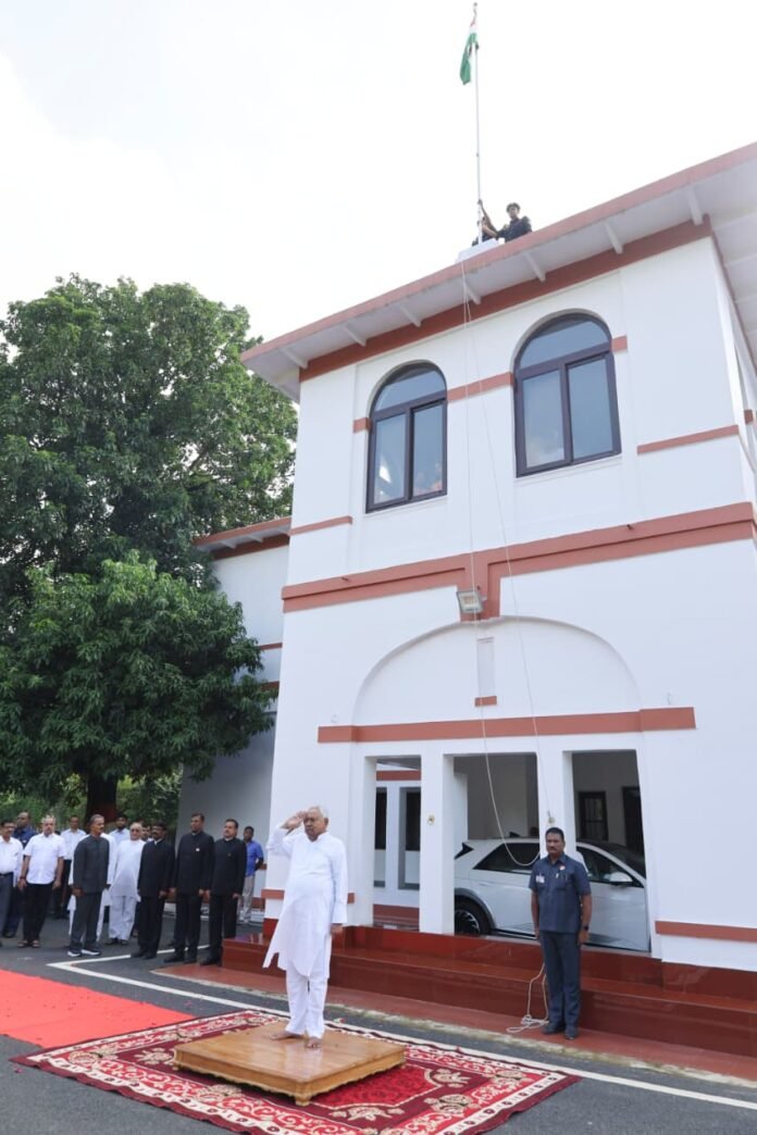 पटना ।मुख्यमंत्री नीतीश कुमार ने आज सुबह अपने सरकारी आवास 1 अणे मार्ग में 79वें स्वतंत्रता दिवस के अवसर पर राष्ट्रीय ध्वज फहराया एवं संयुक्त टुकड़ी की सलामी ली।