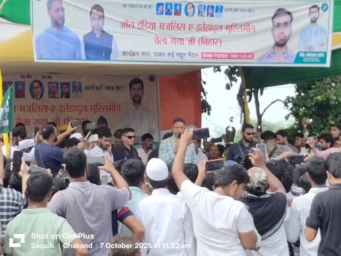 चाकंद उच्च विद्यालय के मैदान में ओवैसी का चुनावी सभा।