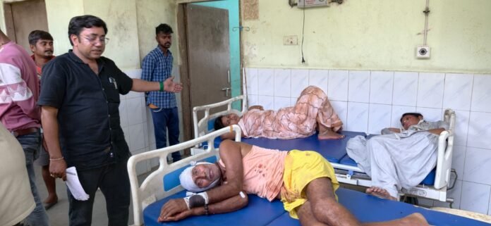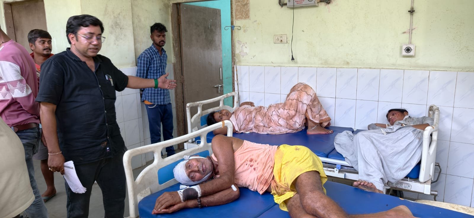 फोटो-घायल का इलाज करते चिकित्सक व अन्य