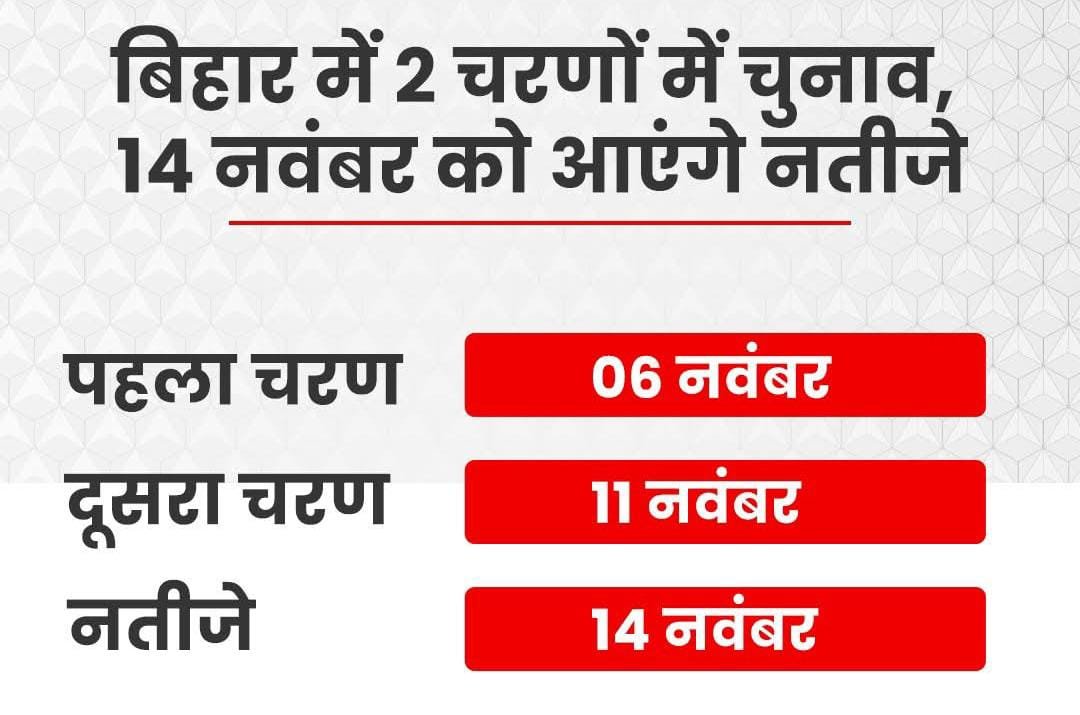 बिहार में बजा चुनावी बिगुल, दो चरणों में होगी वोटिंग, 14 नवंबर को आएंगे नतीजे