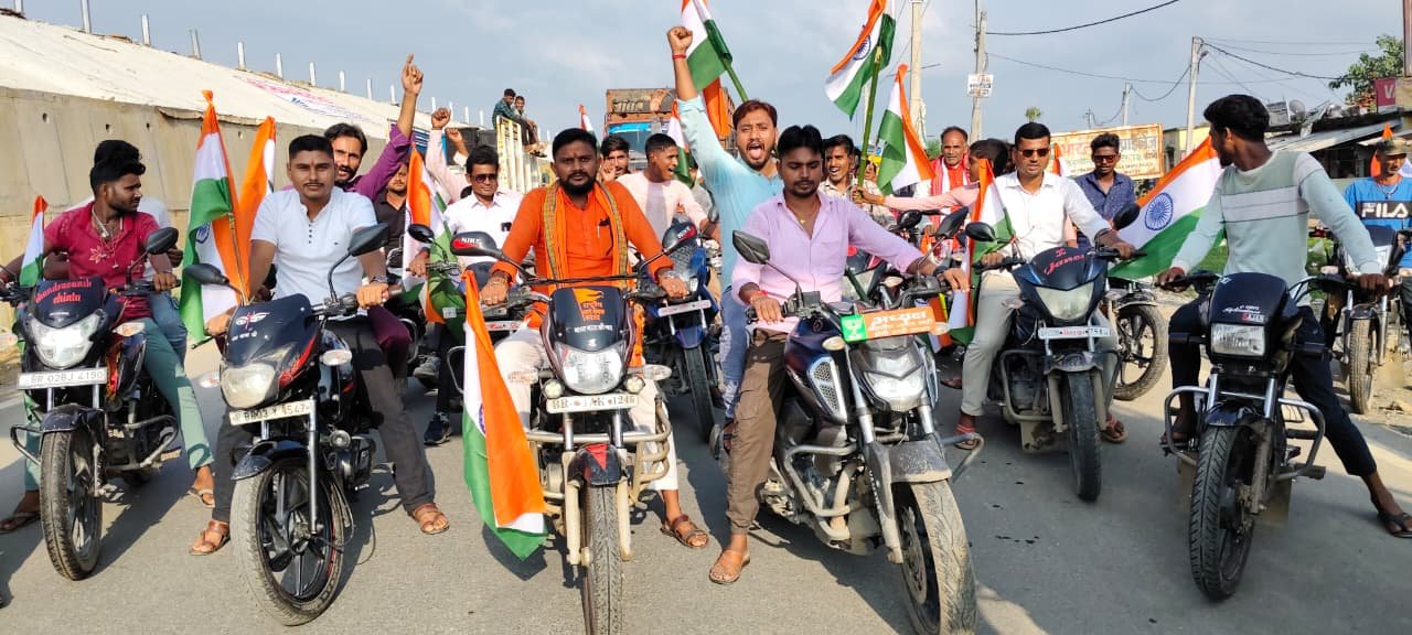 डोभी।स्वतंत्रता दिवस के पूर्व संध्या पर भारतीय जनता पार्टी डोभी उत्तरी तथा दक्षिणी संयुक्त मंडल अध्यक्ष अभ्यास कुमार चन्द्रवंशी तथा सुमन चतुर्वेदी के नेतृत्व में घर – घर तिरंगा अभियान के तहत डोभी में ठाकुरबाड़ी से शुरू तिरंगा बाईक यात्रा निकाली गई जो अमारुत बाजार होते हुए कोठवारा बाजार से पुनः वापस होते हुए हनुमान चौक से श्रीराम चौक होते हुए वकिलगंज , खैरा से वापस होकर ठाकुरबाड़ी के पास सम्पन्न किया गया जिसमें डोभी प्रखण्ड के सभी पंचायतों से भाजपा कार्यकर्ता बड़ी संख्या में भाग लिए एवं भारत माता कि जय, वंदे मातरम की जयघोष करते हुए देश के लिए बलिदान हुए शहिदों को याद किया। यात्रा का संचालन डोभी उत्तरी मंडल के युवा मोर्चा अध्यक्ष राकेश कुमार वर्मा एवं महामंत्री चंदन कुमार केसरी ने किया।इस यात्रा में विकास कुमार ,शशि रंजन कुमार ,आनंद कुमार मांझी, पंकज सिंह ,सुरेश साव ,किशोरी गुप्ता, विनोद पांडेय, मुरारी दांगी, टुनटुन गुप्ता सहित सैंकड़ों कार्यकर्ता मौजूद रहे।
