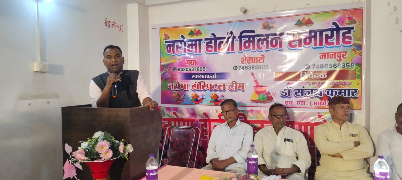 नरोमा हॉस्पिटल के डॉक्टर संजय कुमार ने उपस्थित लोगों को अंगवस्त्र एवं गुलाल लगाकर सम्मानित किया। इस अवसर पर उन्होंने शनिवार शाम चार बजे कहा कि होली पर्व आपसी भाईचारे, प्रेम और सद्भाव का प्रतीक है। यह पर्व समाज में आपसी मतभेद को भुलाकर एक-दूसरे के साथ खुशियां साझा करने का अवसर प्रदान करता है।