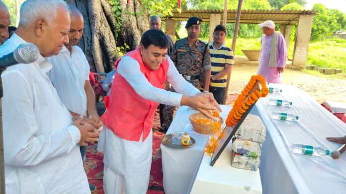 वजीरगंज।वजीरगंज क्षेत्र के जाने माने शिक्षाविद व संघ प्रचारक तथा जनसंघ नेता स्व0 रामसेवक सिंह की 13वीं पुण्यतिथि रविवार को उनके समाधी स्थल बैजनाथपुर में मनाई गई। सबसे पहले बिहार राज्य सवर्ण आयोग के अध्यक्ष डॉ0 महाचन्द्र प्रसाद सिंह ने दीप प्रज्वलित किया एवं उनकी प्रतिमा पर पुष्पांजलि अर्पित कर नमन किया, उसके बाद सभी आगत अतिथियों ने श्रद्धांलि दी। समारोह को संबोधित करते हुए अध्यक्ष डॉ0 महाचन्द्र प्रसाद सिंह ने कहा कि बड़े ही भाग्य से हमें ऐसे महान पुण्यात्मा की पुण्यतिथि समारोह में शामिल होने का मौका मिला है, जिन्होंने अपना पूरा जीवन समाज में शिक्षा का अलख जगाने का कार्य किया है। कांग्रेस नेता डॉ0 शशिशेखर सिंह, जदयू प्रखंड अध्यक्ष महेश सिंह, अक्षय सिंह एवं अन्य ने कहा कि वे एक कुशल शिक्षक तो थे ही, समाज में व्याप्त अशिक्षा और कुरीतियों को खत्म करने में भी योगदान दिया है, वे कर्मठ व कुशल व्यक्तित्व के धनी थे। अमर शंकर उर्फ काका सिंह ने कहा कि वे एक कुशल कृषक भी थे। आयोजक रामसेवक सिंह फाउण्डेशन सदस्य सह लोजपा युवा प्रदेश सचिव रामसेवक बाबु के पौत्र मनिष कुमार उर्फ कुन्नु ने कहा कि समारोह में आज उप मुख्मंत्री विजय सिन्हा भी आने वाले थे, लेकिन समयाभाव के कारण पत्राचार के माध्यम से उन्होंने आने में अपनी असमर्थता जतायी है। समारोह की अध्यक्षता एवं संचालन समाजसेवी कमला प्रसाद सिंह ने की। मौके पर बीडीओ प्रभाकर सिंह, पंकज सिंह, शम्भुशरण शर्मा, रामनरेश प्रसाद सिंह, नूतन सिंह, राजेश कुमार, साधुशरण सिंह एवं अन्य दर्जनों लोग व ग्रामीण उपस्थित रहे।