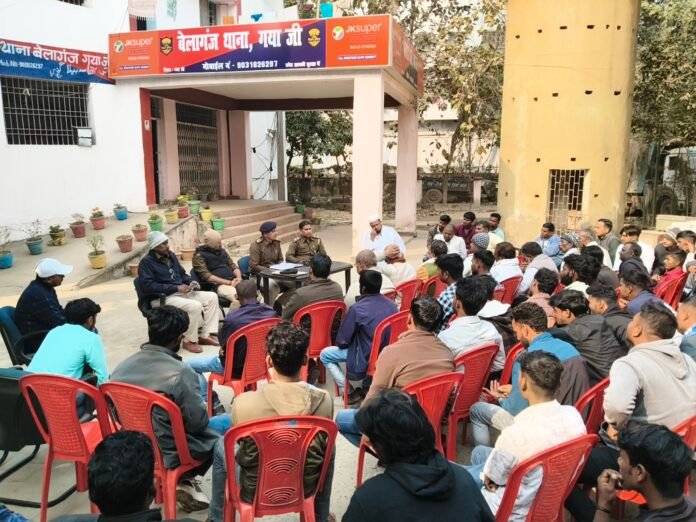 बेलागंज। बेलागंज थाना परिसर में मंगलवार को शांति समिति की बैठक आयोजित की गई। आगामी 23 जनवरी को सरस्वती पूजा को शांति एवं सौहार्द वातावरण में मनाने के लिए बैठक बुलाई गई थी, जिसमें थाना क्षेत्र के अलग-अलग पंचायतों से दर्जनों समाजसेवी व जनप्रतिनिधियों ने भाग लिया। बैठक को संबोधित करते हुए थानाध्यक्ष मनोज कुमार पांडे ने बताया कि वरीय पुलिस अधिक्षक से मिले गाइड लाइन के अनुसार डीजे पर पूर्ण रूप से प्रतिबंध रहेगा ही 25 जनवरी को हर हाल में प्रतिमा विसर्जन करा लिया जाएगा। वहीं समिति सदस्यों ने भी सर्वसम्मति से सूर्यास्त तक हर हाल में प्रतिमा विसर्जन कराने का निर्णय लिया। थानाध्यक्ष ने कहा कि शांति व्यवस्था कायम रखने के लिए आप सभी पुलिस का सहयोग करें एवं छोटे मामलों को सूचना देकर सुलझाने का प्रयास करें। वहीं पुलिस मनचलों व शरारती तत्वों पर पैनी नजर रखेगी तथा शराबी तथा शराब कारोबारियों के विरूद्ध त्वरित कार्रवाई की जाएगी। सभी पूजा समिति अपना – अपना निबंधन जरूर करा लेंगे एवं जुलुस तथा अन्य वृहद कार्यक्रमों के लिए स्वीकृति भी जरूर लेंगे। बैठक में अपर थानाध्यक्ष कमलेश कुमार पासवान, एस आई राजन कुमार सिंह, चंदन चौधरी महेश शर्मा रंजेश कुमार, अनुमंडल शांति समिति सदस्य मो0 वसीम अंसारी,नोनू शर्मा, गुड्डू यादव, सहित कई गणमान्य लोग मौजूद रहे।