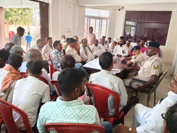 बेलागंज।आगामी दीपावली और छठ पर्व को लेकर चाकंद थाना परिसर में शांति समिति की बैठक आयोजित की गई। जिसमें बड़ी संख्या में स्थानीय सामाजिक कार्यकर्ता, पूजा समिति के सदस्य एवं गणमान्य लोग उपस्थित रहे। अपर थानाध्यक्ष अनिवेश कुमार की अध्यक्षता में हुई शांति समिति की बैठक में अधिकारी ने दीपावली एवं छठ व्रत शांति एवं सौहार्दपूर्ण वातावरण में मनाने की अपील की। अपर थानाध्यक्ष अनिवेश कुमार ने कहा कि बेलागंज पूजा के दौरान उपद्रव एवं अराजकता फैलाने वाले लोगों पर पुलिस की कड़ी नजर रखेगी। उन्होंने उपस्थित लोगों से शांति व्यवस्था बनाए रखने के लिए पुलिस प्रशासन की मदद की अपील की। जिसपर उपस्थित लोगों सर्वसम्मति से सहमति जताया। बैठक में एसआई ऋषि कुमार, पूर्व जिला पार्षद नागेन्द्र सिंह, युवा छात्र नेता नितिन कुमार सिंह, मो हफीज, राजद नेता प्रदीप कुमार सहित क्षेत्र के कई गणमान्य लोग उपस्थित रहे।
