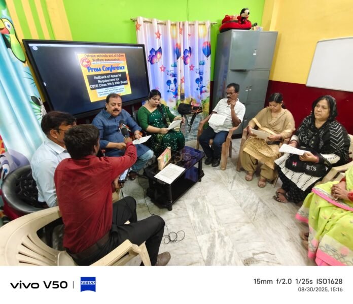 पटना।प्राइवेट स्कूल्स एंड चिल्ड्रेन वेलफेयर एसोसिएशन के राष्ट्रीय अध्यक्ष सैयद शमायल अहमद ने केंद्रीय माध्यमिक शिक्षा बोर्ड (CBSE) द्वारा जारी हालिया निर्देश पर गंभीर आपत्ति जताई है। यह निर्देश, जो कि सीबीएसई परीक्षा नियंत्रक डॉ. संयम भारद्वाज द्वारा पत्र संख्या CBSE/LOC/X-XII/2025-26/ दिनांक 27.08.2025 के माध्यम से जारी किया गया है, कक्षा 10वीं एवं 12वीं के सभी विद्यार्थियों के लिए अपार आईडी (APAR ID) को अनिवार्य बनाता है। इस संदर्भ में एसोसिएशन के राष्ट्रीय अध्यक्ष शमायल अहमद ने CBSE के चेयरमैन श्री राहुल सिंह को पत्र के माध्यम से आग्रह किया है कि अविलंब इस आदेश को रद्द करें एवं लाखों बच्चों को परीक्षा से वंचित होने से बचाएं।
