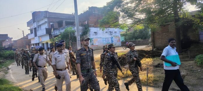 चाकंद थाना क्षेत्र में चुनाव को लेकर सुरक्षा बलो ने किया फ्लैग मार्च