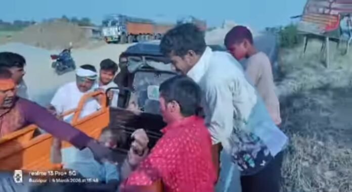 हादसे में मो. खालिद कुरैशी (45), पिता यूसुफ कुरैशी, गुलाम नबी (24), पिता खालिद कुरैशी तथा मो. सरफुद्दीन कुरैशी (30), पिता सलाउद्दीन कुरैशी गंभीर रूप से घायल हो गए।