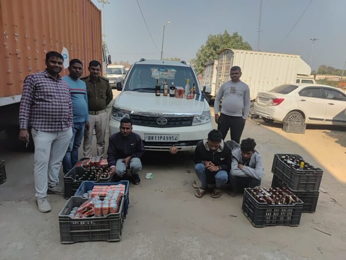 डोभी /गयाजी ।समेकित जांच चौकी, डोभी पर वाहन जांच के दौरान पुलिस ने एक उजला रंग के टाटा सफारी सरकारी कार से अवैध विदेशी शराब एवं बीयर की बड़ी खेप बरामद की है। इस मामले में तीन व्यक्तियों को गिरफ्तार किया गया है।पुलिस के अनुसार गिरफ्तार आरोपियों मेंजिनेश कुमार चालक, पिता– सुरेश प्रसाद सिंह, निवासी सहदुल्लापुर, थाना– गंगा ब्रिज, जिला– वैशाली (बिहार), उम्र करीब 30 वर्ष,शशिकांत सिंह, पिता– चंद्रशेखर सिंह, निवासी सहदुल्लापुर, थाना गंगा ब्रिज, जिला वैशाली (बिहार), उम्र करीब 31 वर्ष,शिवम कुमार, पिता राजकिशोर सिंह, निवासी– सेहपुर गंगर, थाना– बिदुपुर, जिला– वैशाली बिहार, उम्र करीब15वर्ष,शामह।कुल 184.740 लीटर (381 बोतल) अवैध विदेशी शराब एवं बीयर जब्त की गई है। साथ ही टाटा सफारी कार को भी जब्त करलिया गया है।पुलिस ने बताया कि अनुसंधान के उपरांत आरोप पत्र समर्पित किया जाएगा। छापेमारी दल में श्री बटेश यादव, श्री विजय कुमार, श्री हनलाल कुमार, श्री धर्मेंद्र बैठा , स.अ.नितथा चालक सिपाही प्रेम बल एवं गृह रक्षक जवान शामिल थे।पुलिस आगे की कार्रवाई में जुटी है।