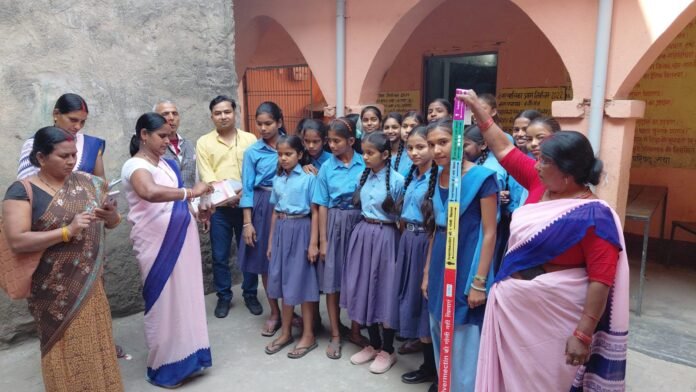 स्वास्थ्य विभाग के आशा कर्मियों द्वारा स्कूली बच्चों को कराया जा रहा दवा का सेवन