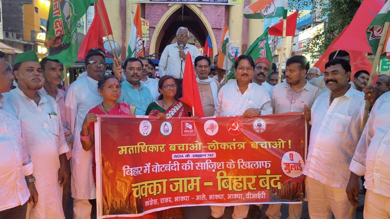पटना।9 जुलाई को केंद्रीय ट्रेड यूनियनों के आह्वान पर अखिल भारतीय आम हड़ताल व विशेष सघन पुनरीक्षण वापस लेने की मांग पर इंडिया गठबंधन के बिहार बंद व चक्का जाम की पूर्व संध्या पर गया में मशाल जुलूस निकाला गया। समाहरणालय से शुरू हुआ जुलूस जीबी रोड होते टावर चौक पहुंचा जहां सभा का आयोजन किया गया।