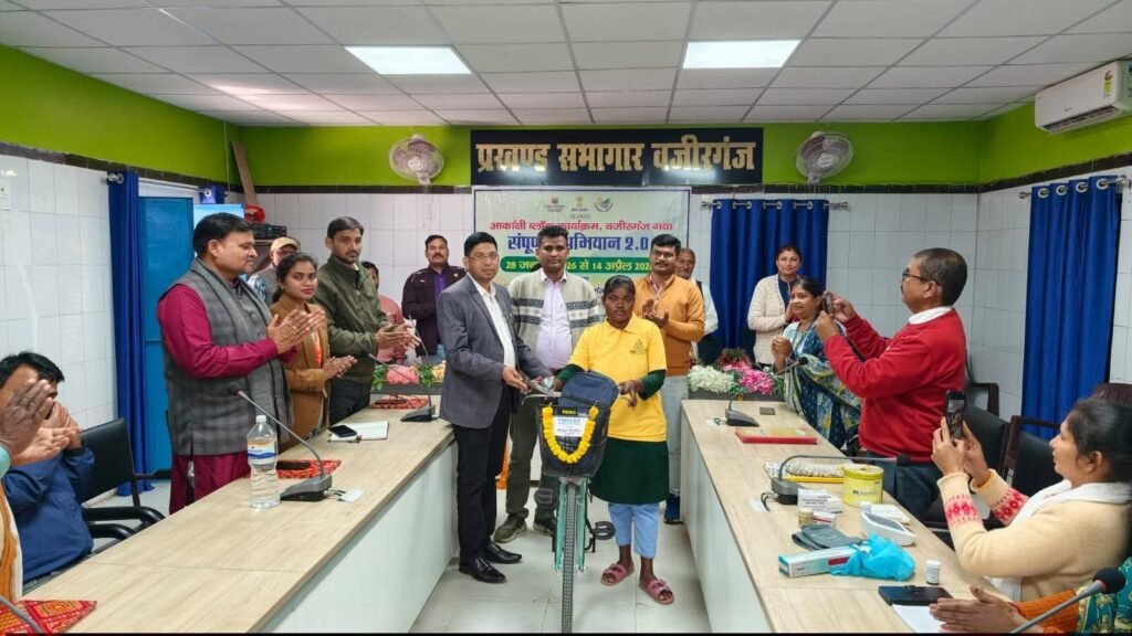 वजीरगंज।वजीरगंज प्रखंड मुख्यालय के ट्राईसेम भवन में मंगलवार को 90 दिवसीय सम्पूर्णता अभियान की शुरूआत बैठक आयोजित कर की गई। प्रखंड विकास पदाधिकारी प्रभाकर सिंह ने कहा कि यह कार्यक्रम सभी आकांक्षी प्रखंडों में नीति आयोग के माध्यम से चलाया जा रहा है, जिसमें 6 प्रमुख संकेतकों पर कार्य करना है। मातृ एवं शिशु स्वास्थ, पोषण, स्कूलों में शौचालय, तपेदिक के मामलों की पहचान और पशु टीकाकरण शामिल है। इन सभी योजनाओं को पूरा करने का लक्ष्य इस अभियान के माध्यम से रखा गया है, जिसमें संबंधित पदाधिकारियों व कर्मियों तथा जनप्रतिनिधियों को आपसी समन्वय बनाकर कार्य करना होगा। वहीं प्रखंड कार्यान्यवयन समिति के अध्यक्ष महेश प्रसाद सिंह, अमैठी मुखिया अशोक पासवान, करजरा मुखिया राजकुमार पासवान, पंसस आनंद मिलींद सहित अन्य जनप्रतिनिधियों ने कहा कि सर्वाधिक मामले आईसीडीएस से जुड़े हुए हैं, जिसमें परियोजना पदाधिकारी को हमलोग सहयोग करेंगे। मौके पर मौजूद नीति आयोग पदाधिकारी ने भी अपनी बात रखी तथा लक्ष्य की पूर्ति के लिए सभी को प्रेरित किया। बैठक के दरम्यान सेंटर डायरेक्टर व मुकुल फाउंडेशन के माध्यम से एक असहाय बालिका को साइकिल दिया गया। प्रखंड समन्वयक धर्मेन्द्र कुमार ने बताया कि संस्थान के माध्यम से असहाय बालिकाओं को शिक्षा के प्रति जागृत करने, बाल विवाह रोकने के उद्देश्य की पूर्ति के लिए प्रखंड में दो बालिकाओं का चयन किया गया था, जिसमें से एक बच्ची को पूर्व में साइकिल मिल चुका है, यह बच्ची बीमार थी, जिसे आज बुलाकर बीडीओ प्रभाकर सिंह के द्वारा साइकिल दिलवाया गया है। अंत में सभी जनप्रतिनिधियों, पदाधिकारियों व कर्मियों ने लक्ष्य की प्राप्ति के लिए सामुहिक रूप से शपथ ली।