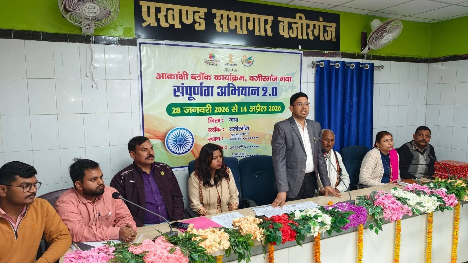 वजीरगंज।वजीरगंज प्रखंड मुख्यालय के ट्राईसेम भवन में मंगलवार को 90 दिवसीय सम्पूर्णता अभियान की शुरूआत बैठक आयोजित कर की गई। प्रखंड विकास पदाधिकारी प्रभाकर सिंह ने कहा कि यह कार्यक्रम सभी आकांक्षी प्रखंडों में नीति आयोग के माध्यम से चलाया जा रहा है, जिसमें 6 प्रमुख संकेतकों पर कार्य करना है। मातृ एवं शिशु स्वास्थ, पोषण, स्कूलों में शौचालय, तपेदिक के मामलों की पहचान और पशु टीकाकरण शामिल है। इन सभी योजनाओं को पूरा करने का लक्ष्य इस अभियान के माध्यम से रखा गया है, जिसमें संबंधित पदाधिकारियों व कर्मियों तथा जनप्रतिनिधियों को आपसी समन्वय बनाकर कार्य करना होगा। वहीं प्रखंड कार्यान्यवयन समिति के अध्यक्ष महेश प्रसाद सिंह, अमैठी मुखिया अशोक पासवान, करजरा मुखिया राजकुमार पासवान, पंसस आनंद मिलींद सहित अन्य जनप्रतिनिधियों ने कहा कि सर्वाधिक मामले आईसीडीएस से जुड़े हुए हैं, जिसमें परियोजना पदाधिकारी को हमलोग सहयोग करेंगे। मौके पर मौजूद नीति आयोग पदाधिकारी ने भी अपनी बात रखी तथा लक्ष्य की पूर्ति के लिए सभी को प्रेरित किया। बैठक के दरम्यान सेंटर डायरेक्टर व मुकुल फाउंडेशन के माध्यम से एक असहाय बालिका को साइकिल दिया गया। प्रखंड समन्वयक धर्मेन्द्र कुमार ने बताया कि संस्थान के माध्यम से असहाय बालिकाओं को शिक्षा के प्रति जागृत करने, बाल विवाह रोकने के उद्देश्य की पूर्ति के लिए प्रखंड में दो बालिकाओं का चयन किया गया था, जिसमें से एक बच्ची को पूर्व में साइकिल मिल चुका है, यह बच्ची बीमार थी, जिसे आज बुलाकर बीडीओ प्रभाकर सिंह के द्वारा साइकिल दिलवाया गया है। अंत में सभी जनप्रतिनिधियों, पदाधिकारियों व कर्मियों ने लक्ष्य की प्राप्ति के लिए सामुहिक रूप से शपथ ली।
