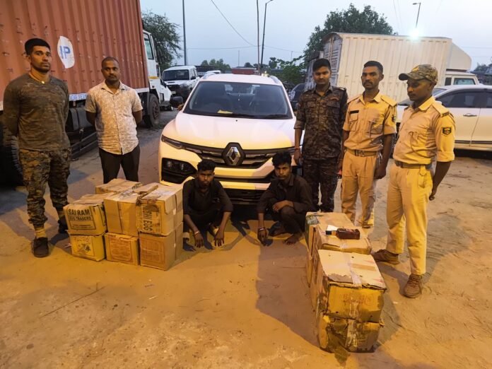 डोभी/ गया।डोभी थाना क्षेत्र में पुलिस ने बड़ी कार्रवाई करते हुए अवैध विदेशी शराब परिवहन कर रहे दो व्यक्तियों को गिरफ्तार किया है। यह कार्रवाई खैरा गांव के पास की गई, जहां एक बिना पंजीयन संख्या वाली Renault कार से शराब की खेप बरामद की गई।पुलिस के अनुसार, गिरफ्तार व्यक्तियों की पहचान मंटू कुमार (चालक) और विनय कुमार मुंडा के रूप में हुई है। दोनों झारखंड के चतरा जिले के निवासी बताए जा रहे हैं,छापेमारी के दौरान पुलिस ने वाहन से कुल 144 लीटर अवैध विदेशी शराब (384 बोतल) जब्त की है। यह शराब चोरी-छिपे परिवहन की जा रही थी।इस कार्रवाई में सब-इंस्पेक्टर स्तर के कई अधिकारी एवं सशस्त्र बल के जवान शामिल थे। पुलिस ने बताया कि मामले की जांच जारी है और अनुसंधान के बाद आरोप पत्र न्यायालय में समर्पित किया जाएगा।