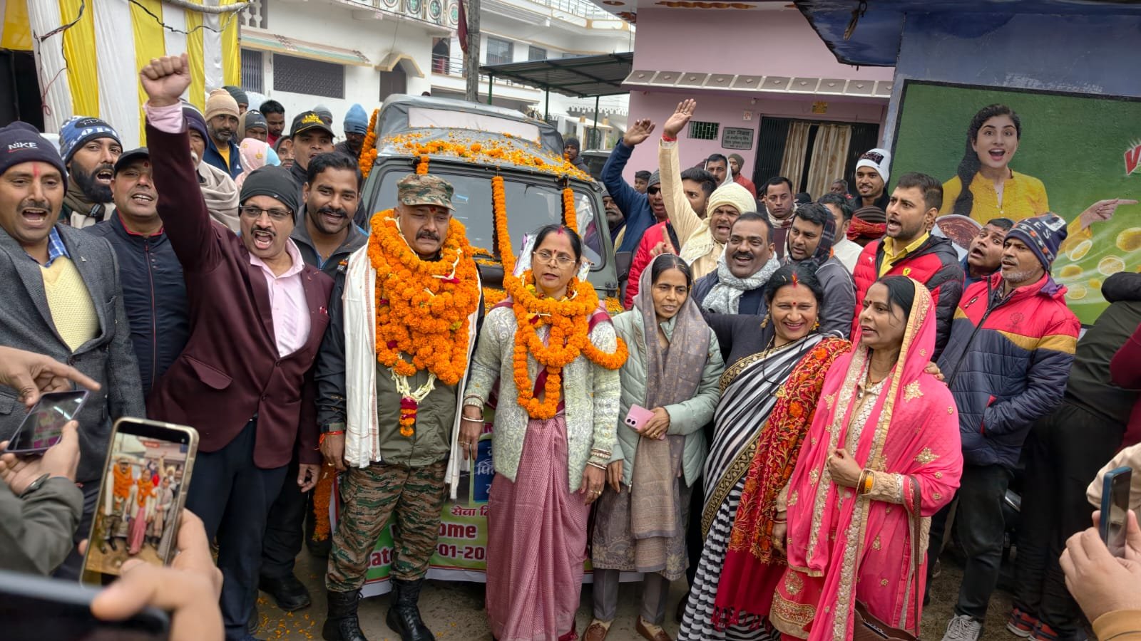 वजीरगंज। वजीरगंज प्रखंड के बभंडीह गांव निवासी धर्मेन्द्र कुमार सिंह को भारतीय सेना के सूबेदार पद से सेवानिवृत होकर घर लौटने पर शनिवार को उनके पैतृक गांव में ग्रामीणों ने बैंड बाजे के साथ धूमधाम से स्वागत किया। गांव में प्रवेश करने से पहले सेवानिवृत सैन्य अधिकारी ने सभी मंदिरों एवं ठाकुर स्थान पर जाकर पूजा-अर्चना की, उसके बाद ग्रामीण सड़क के दोनों तरफ खड़े होकर पुष्प वर्षा करते हुए भारत माता की जय के नारे लगाते रहे। उसके बाद गृह प्रवेश करते समय उनकी पत्नी ने उन्हें तिलक लगाया।सेवानिवृत अधिकारी श्री सिंह ने कहा कि ग्रामीणों ने मुझे सम्मान जो दिया है, जिसके लिए मैं कृतज्ञ हूँ, लेकिन सबसे बड़ा सम्मान हमारे देश की सेना को मिली है, जिससे मैं गौरवान्वित महसूस कर रहा हूँ। मैंने तीस वर्षों तक निरंतर अपने अधिकारी के आदेशों का पालन करके देश की सेवा की है और मैं चाहता हूँ कि युवा इस गौरव को महसूस करें तथा सेना में सेवा देने के लिये प्रेरित हों।
