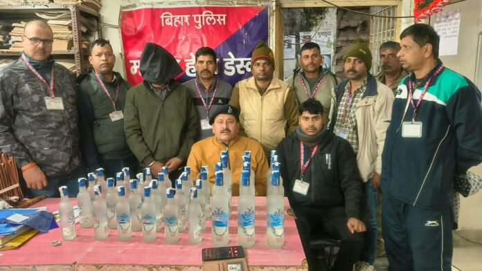 गयाजी।रविवार को गया रेल पुलिस द्वारा रेलवे स्टेशन पर चलाए जा रहे गश्ती अभियान के दौरान एक युवक को अवैध अंग्रेजी शराब के साथ गिरफ्तार किया गया। यह कार्रवाई रेल पुलिस अधीक्षक गया के निर्देश पर की गई। रेलवे स्टेशन के प्लेटफार्म संख्या 01बी पर गश्ती के दौरान दिल्ली छोर के पास एक युवक लाल रंग के ट्रॉली बैग के साथ संदिग्ध अवस्था में खड़ा दिखाई दिया। पुलिस बल को देखते ही वह भागने लगा, जिसे मौके पर मौजूद पुलिसकर्मियों ने घेराबंदी कर पकड़ लिया। पूछताछ करने पर युवक ने बताया कि वह चंडीगढ़ से अंग्रेजी शराब खरीदकर बिहार में अधिक दाम पर बेचने के लिए ला रहा था। गिरफ्तार युवक ने अपना नाम रौशन कुमार (21 वर्ष), पिता विनोद यादव, निवासी खर्रा, थाना सुरजगढ़ा, जिला लखीसराय बताया। तलाशी लेने पर उसके ट्रॉली बैग से मैजिक मोमेंट्स ग्रेन वोडका की कुल 36 बोतलें बरामद की गईं, जिनमें 750 एमएल की 12 बोतल और 375 एमएल की 24 बोतल शामिल हैं। बरामद शराब की कुल मात्रा 24 लीटर आंकी गई है, जिसकी कीमत लगभग 12,180 रुपये बताई गई।